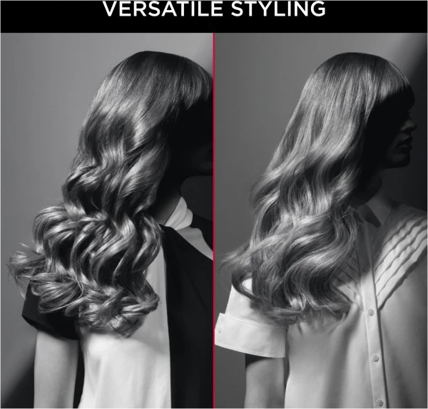 Die exklusive Keratin & Schein-Beschichtung stärkt das Haar und sorgt durch den natürlichen Effekt von Turmalin für eine reduzierte statische Aufladung und zusätzlichen Glanz, mit dem Ergebnis prachtvoller Locken oder glamouröser kraftvoll strahlender Wellen.